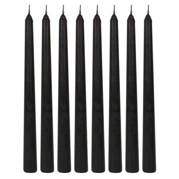 Set the perfect mood, whether for an intimate dinner or a spooky gathering, with our Vampire Blood taper candles. These striking black and red candles create a captivating “bleeding” wax effect that will fascinate your guests. Arrange them in an ornate candelabra for a magical display as the wax gently drips down the sides. Each box contains 8 candles, with a burn time of about 2 hours per candle. Made from unscented paraffin wax. Be sure to protect your surfaces and never leave lit candles unattended.
