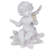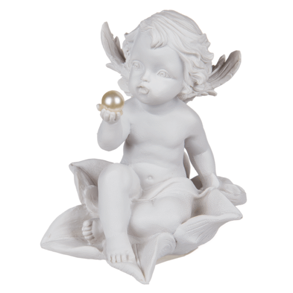 Sitting polyresin angel with pearl on flower, ca. 9, 5 x 12 cm, 3 ass. – The lovingly designed angel figurines exude a calm and secure feeling, which come into their own excellently as a decorative element. The heavenly companions in polyresin leave a positive effect in the environment and make an excellent gift straight from the heart. The sitting angels decorated with a pearl ornament. Angel figurine