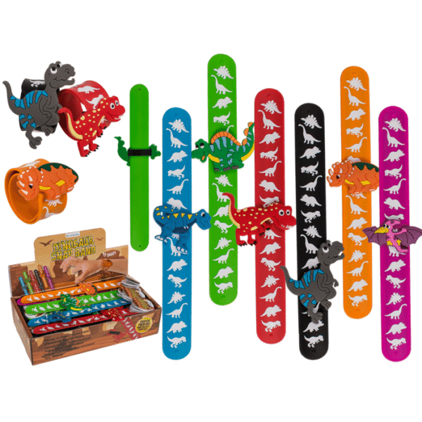 Snap Band, Dinosaur, approx. 21,5 x 3,5 cm, Snap Band Dinosaur Silicone PVC Back-to-school Kids Fun Assorted Display Gift