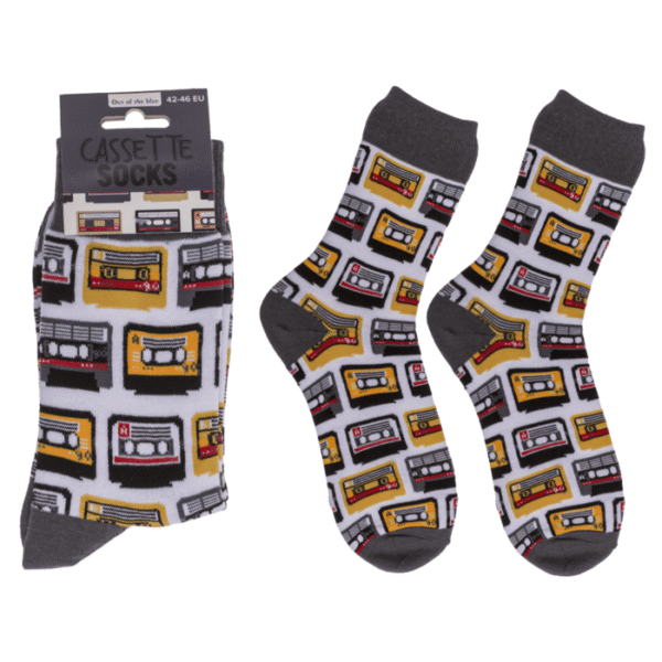 Socks, cassettes, size 42-46, 70% cotton, 25% polyester, 5% elasthan, with headercard, 12 pairs in polybag – Clothing Comfort Music Retro Gift