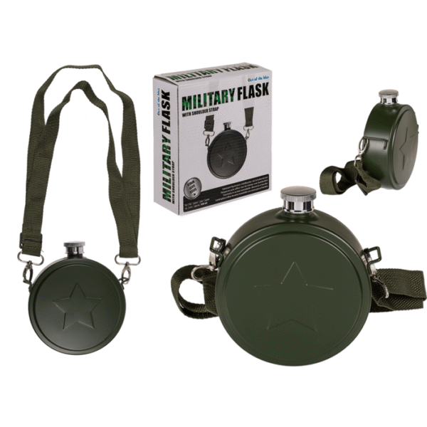 Stainless Steel Flask, Military Flask with shoulder strap, for ca. 530 ml, ca. 15 x 13 cm – Hiking has never been so practical! The stainless steel flat man doesn’t take up any space in your rucksack, because you can easily put it on thanks to the shoulder strap. The water bottle has a capacity of approx. 530 ml and is based on the military style. The shoulder strap can be adjusted to any body size and level of comfort. Stainless Steel