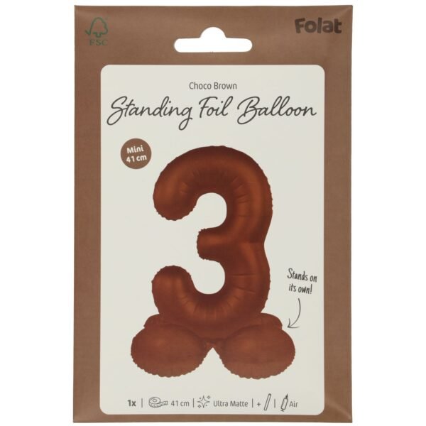 A tasteful colour for that extra festive party. Standing Foil balloon Number 3 – Chocolate Brown – Ultra Matt – 41 cm. Contains: 1 foil balloon. Can be used for example during the following party occasion(s): Birthday