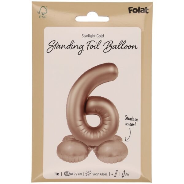 A modest shine for every party. Standing Foil balloon Number 6 – Starlight Gold – Satin Gloss – 72 cm. Contains: 1 foil balloon. Can be used for example during the following party occasion(s): Birthday