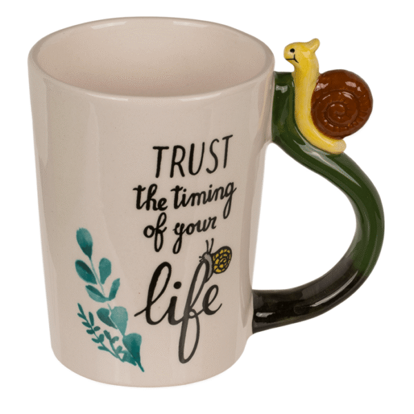Stoneware mug, Snail Trust the timing of your life 11 x 8,5 cm, 300 ml, in gift box Stoneware mug