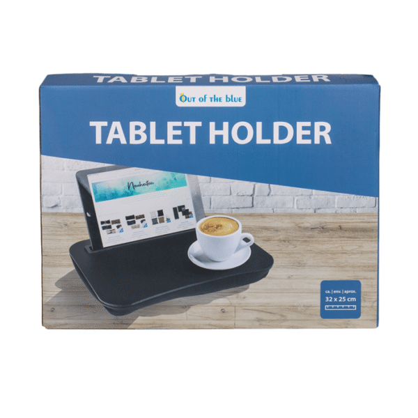 Tablet holder ca. 32 x 25 cm, polyester, in gift box – With the universal tablet holder you can comfortably watch a movie or even work with it! The soft underside of the holder ensures that it can stay perfectly in place on your bed and on your legs. The tablet can simply be clamped into the slot to give you the perfect angle to enjoy your favorite series with your coffee. Tablet stand