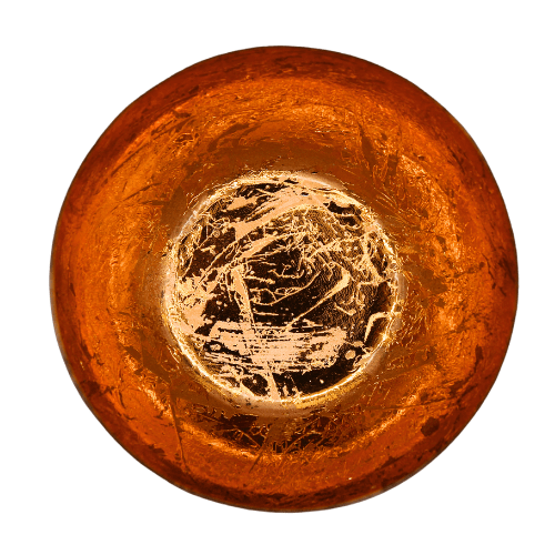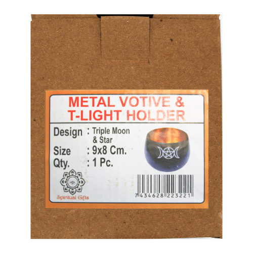 This candle holder features a dual-color design. It has a smooth, matte black surface on the outside and a shining interior of copper tone that provides an eye-catching contrast. Designed to fit one tealight candle, this compact and circular holder captures and reflects the candle’s light, emitting a gentle and soothing copper light.