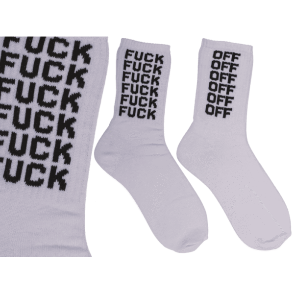 Tennis socks, Fuck Off, size 38-42, 70% cotton, 25% polyamide, 5% elasthan, with headercard, 12 pairs in polybag – Sportswear Athletic Funny Rude Gift