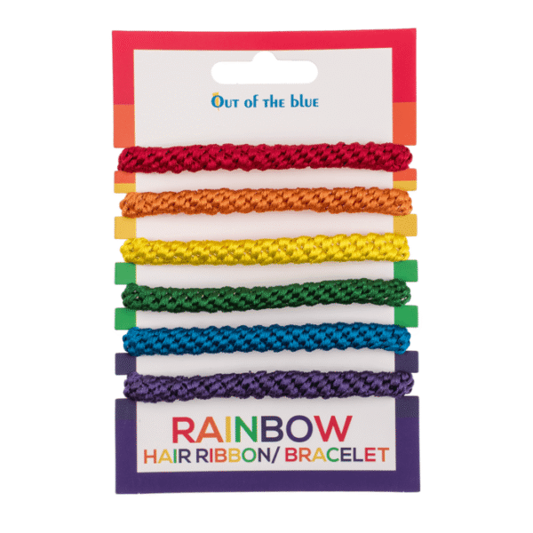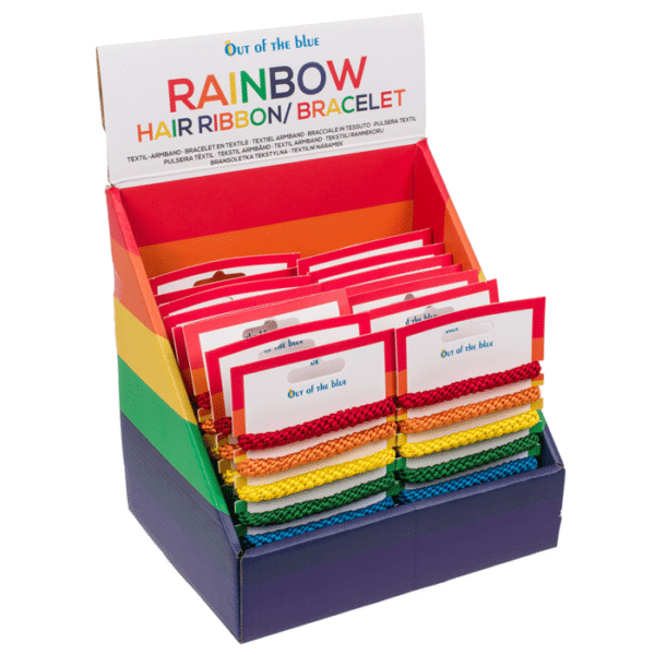 Textile hair ribbonbracelet, Rainbow colours, Pride, 6 colours ass. per paper card, 16 cards per display Rainbow ribbon