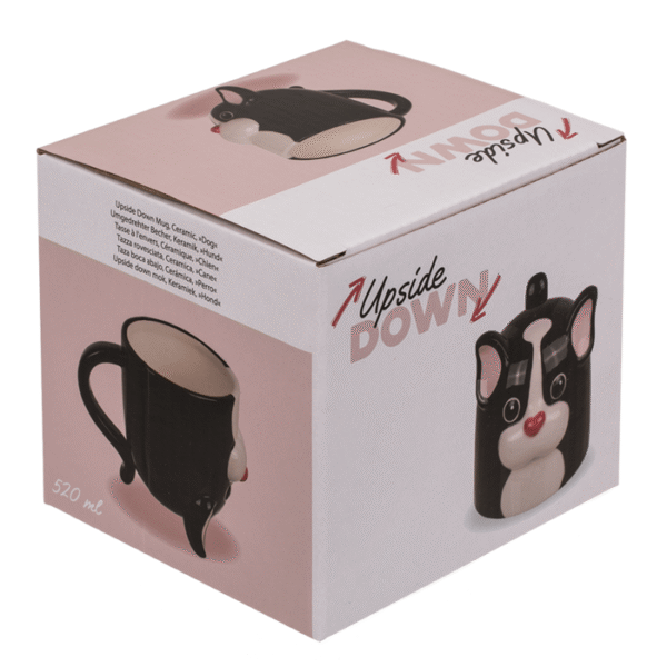 Upside Down Mug, Dog, ca. 12 x 14 cm, ceramic ca. 400 ml – We have the ideal solution to keep away from the ordinary cups! Placed upside down, the mug turns into a real eye-catcher in an open kitchen or on the decorated breakfast table, and to drink, you simply turn the cup over so that it stands securely on the dog’s ears and tail. This makes every drink a highlight and it definitely has a recognition value. The cup has a filling capacity of approx. 520 and is ideal as a gift for all those who love coffee and extraordinary mugs! Novelty Mug