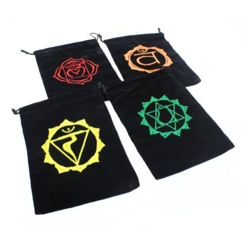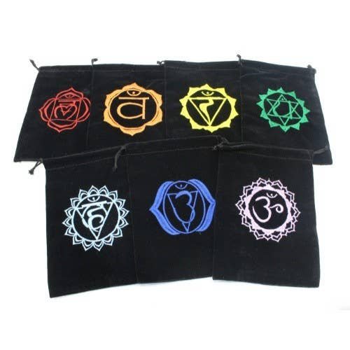 Each bag features an embroidered chakra symbol, representing energy balance and alignment.