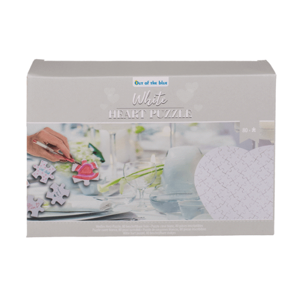 White heart shape puzzle, 80 inscribable pieces, ca. 60 x 60 cm, in color box – Wedding puzzle