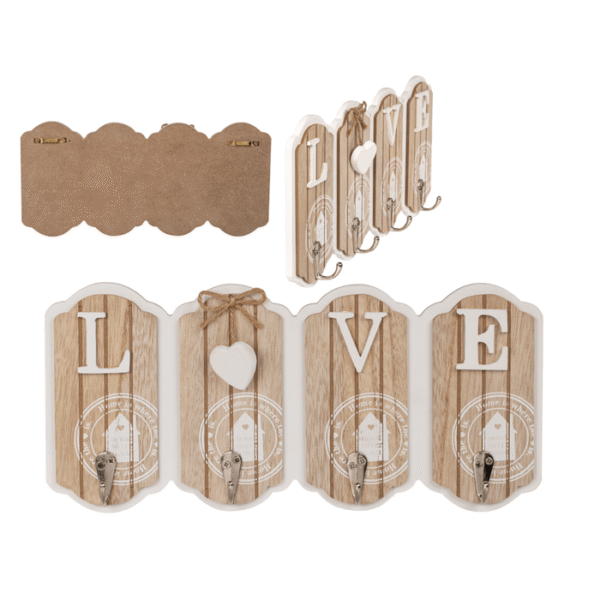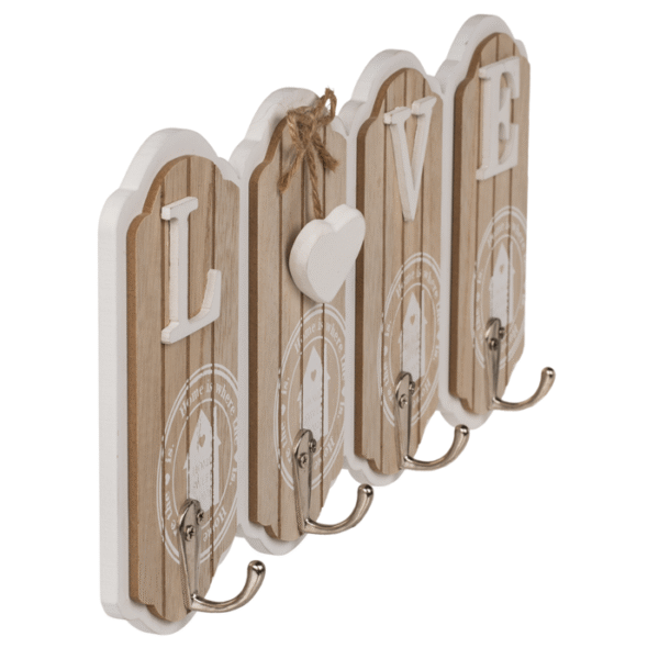 Whitenature coloured Wooden key board, LOVE, with 4 hooks, approx. 15 x 30 cm – Not only a decorative piece but also a useful feature for the home! The wooden key rack has 4 hooks on which you can hang your keys and other similar accessories. This ensures that you not only have an eye-catching feature in your entrance area, but it will also keep it organised without any keys lying untidy in a tray. White key board