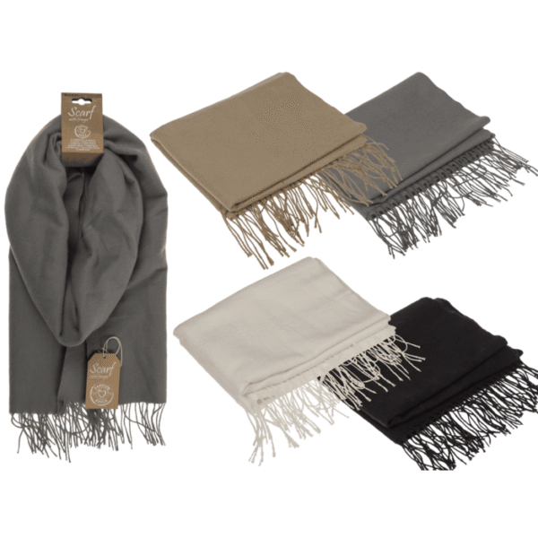Winter scarf with fringes, Fringed scarf Winter accessory Polyester scarf Assorted colors Fashionable scarf Winter wear Long scarf Lightweight scarf Bulk packaging Seasonal fashion