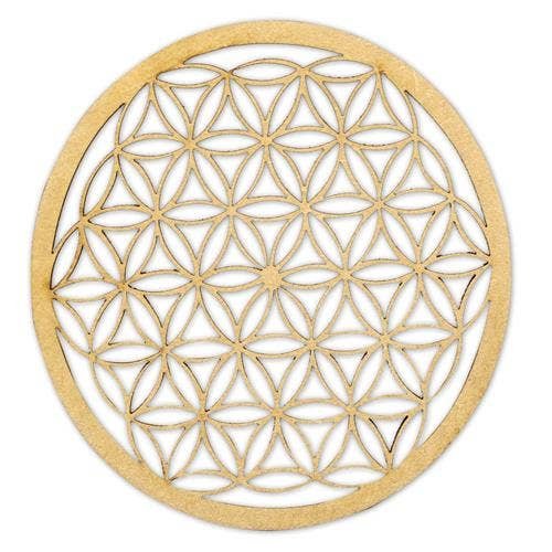 Wooden Crystal Grid Flower of Life 10 cm Set of 2