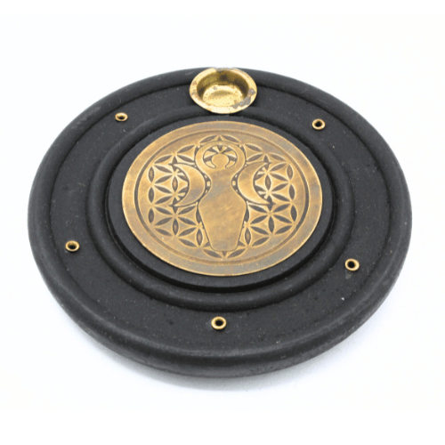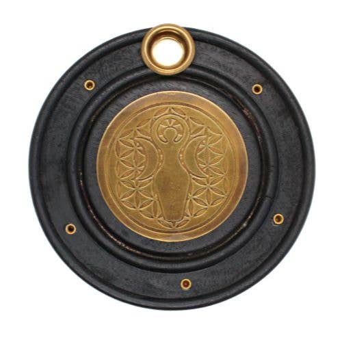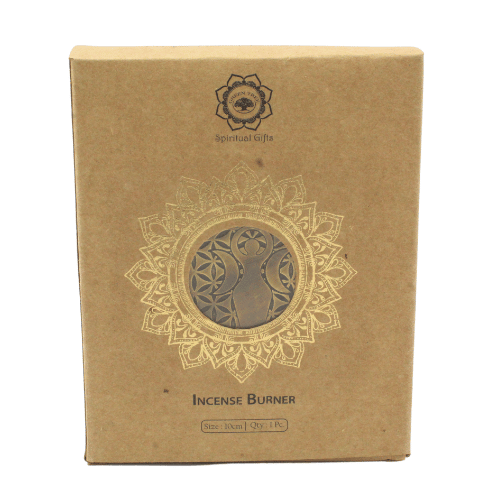 Wooden Incense Burner Brass – Goddess and Flower of Life