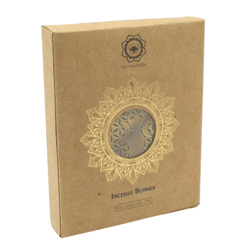 Add style to your store with the Green Tree Wooden Incense Burner. It’s made from eco-friendly wood and has a natural, timeless look. It’s got a Goddess & Flower of Life symbol engraved in brass. It represents feminine energy, spiritual connection, and unity. The burner brings calming energy to any space. On the front of the eco-friendly packaging is a small round window with a beautiful golden Mandala around it. It is not only functional, but also great for gifting.