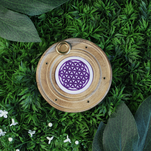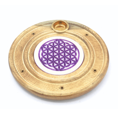 Wooden Incense Burner Purple Flower of Life