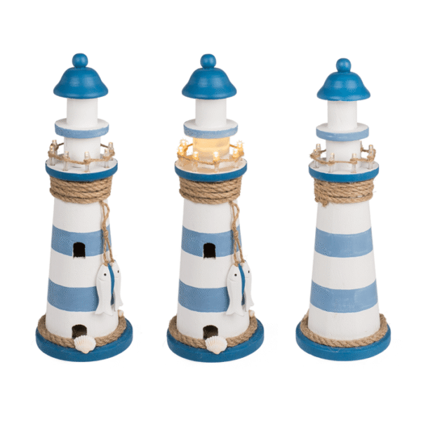 Wooden lighthouse with LED, ca. 10 x 30 cm, for 2 mignon batteries (AAA) – light decoration maritime nautical home decor