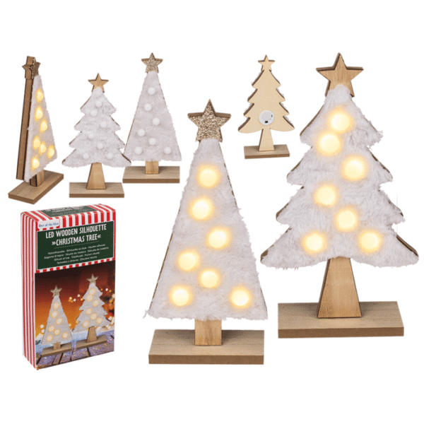Wooden silhouette, Christmas Tree, with LED ca. 10 x 25 cm, 2 ass. in gift box – Wooden silhouette