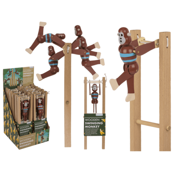 Wooden Swinging Monkey, 7×2,2×23 cm, 12 pcs. per display – Swing Toy Decoration Monkey Wood