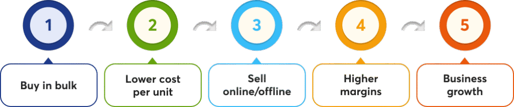 Retailers then resell these items to customers, earning profits from the price difference.